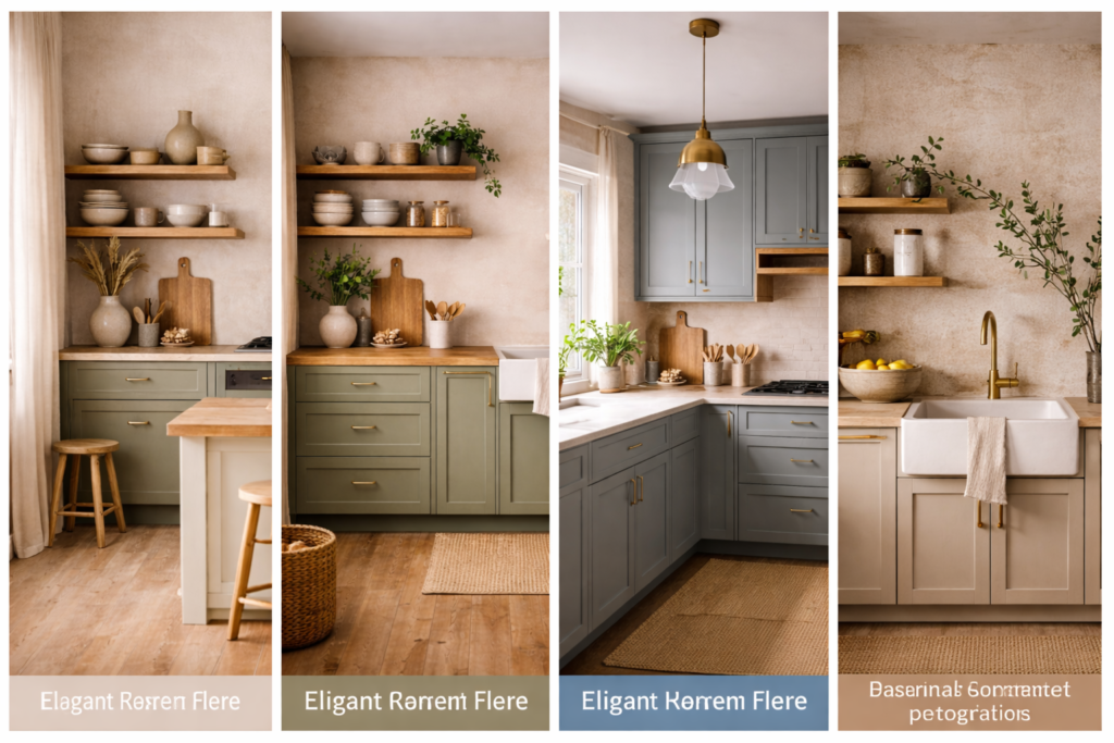 Cabinet colors are becoming more expressive, yet still restrained. Kitchen cabinet trends 2026 show a move away from glossy finishes and toward soft matte surfaces that feel pleasant to touch. Pale mushroom, warm taupe, and smoky beige are popular choices for cabinetry because they sit quietly in the background. This allows everyday objects like ceramics or wooden bowls to stand out. Kitchen color trends 2026 also encourage mixing tones, such as lighter upper cabinets with slightly deeper lower ones, to add depth without clutter.